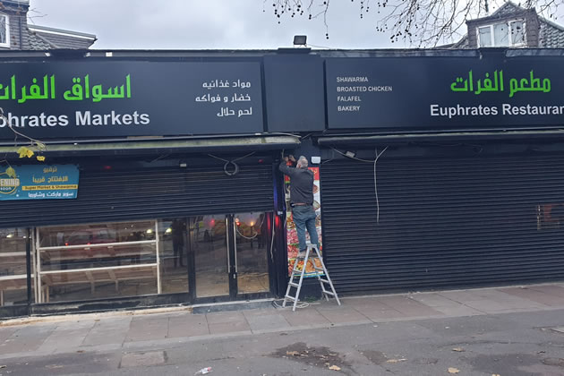 The long-running saga of restaurants at Busch Corner, on the Brentford–Isleworth border, may be entering a new chapter with the arrival of a Middle Eastern and Arabic restaurant and market called Euphrates.