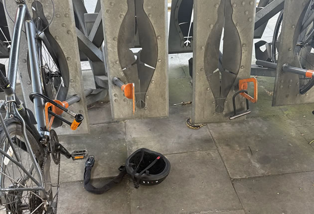 Rory Cellan-Jones returned to find a broken lock and his helmet but no bike. Picture: Rory Cellan-Jones
