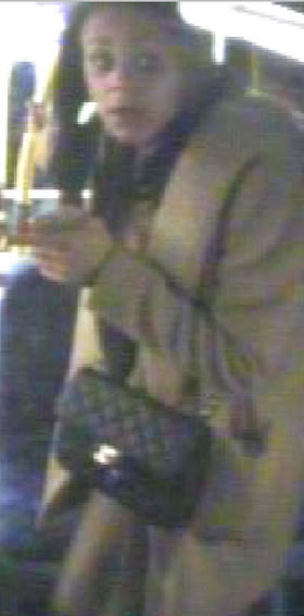 The suspect (pictured left and right) is described as a light-skinned black woman, aged between 23 to 33, slim and wearing a long light brown coat.