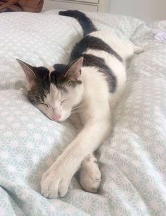 Missing cat Artoo is pictured (right) at home recovering after his worried South Wimbledon owner was re-united with him.